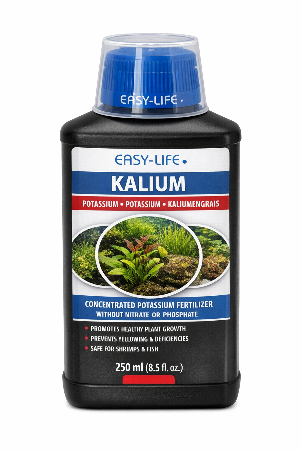 Easy-Life Kalium est un fertilisant spécifique apportant uniquement du potassium (K), élément essentiel à la croissance des plantes aquatiques. Il est particulièrement utile dans les aquariums fortement plantés, les bacs avec éclairage puissant ou injection de CO₂, où la consommation en potassium est élevée.