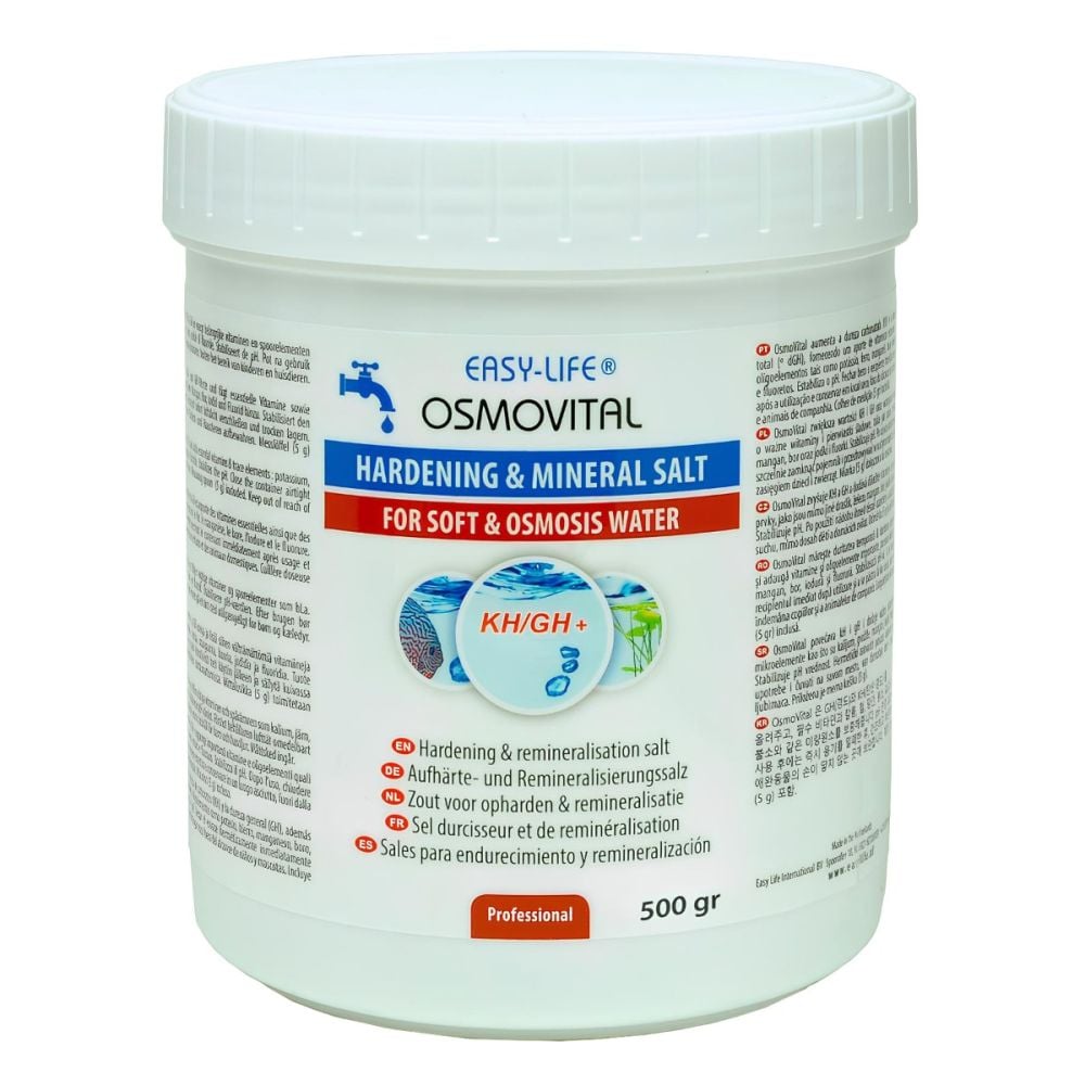 l’OsmoVital 250 g de la marque Easy‑Life est un sel minéralisant hautement soluble conçu pour reminéraliser l’eau osmosée, déminéralisée ou trop douce dans les aquariums d’eau douce. Il permet d’augmenter la dureté totale (GH) et la dureté carbonatée (KH) afin de stabiliser le pH et créer un environnement sain pour les poissons, crevettes et plantes. Le produit apporte aussi des oligo-éléments essentiels comme le potassium, le fer, le manganèse, le bore, l’iode et le fluor, tout en étant sans nitrates ni phosphates, ce qui évite de favoriser les algues. Il s’utilise lors du remplissage du bac ou à chaque changement d’eau pour maintenir des paramètres stables.